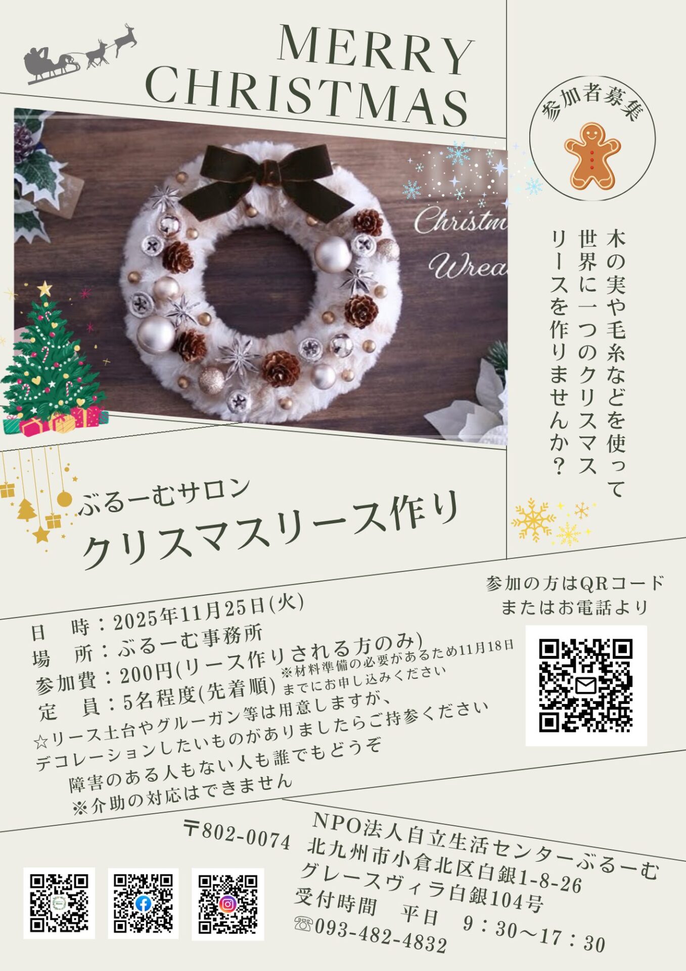 2026年1月29日(木)🖌参加者募集 🎍年末年始休業のお知らせ🎍 2025年12月24日(水)🎄参加者募集 2025年11月25日(火)🎀参加者募集 2025年10月28日(火)🦇参加者募集 2025年11月29日(土)🚃参加者募集 2025年9月30日(火)🥞参加者募集 ピア・カウンセリング✎参加者募集 2025年8月26日(火)🍦参加者募集 2025年7月22日✿参加者募集 2025年7月4日(金)✿北方シネマ18時~ 2025年7月18日✿参加者募集✿ インターンシップ✫参加者募集!! JR九州・東日本で車椅子席のネット予約&障害者割引IC対応へ 車いす対応座席が利用できる駅のうち、えきねっとで予約できる駅は…? 北九州市(公式)障害者差別解消 2025年3月5日✿参加者募集✿ 良かったら読んでください。 事務所移転しました!! 〒802-0074北九州市小倉北区白銀1-8-26 グレースヴィラ白銀104号